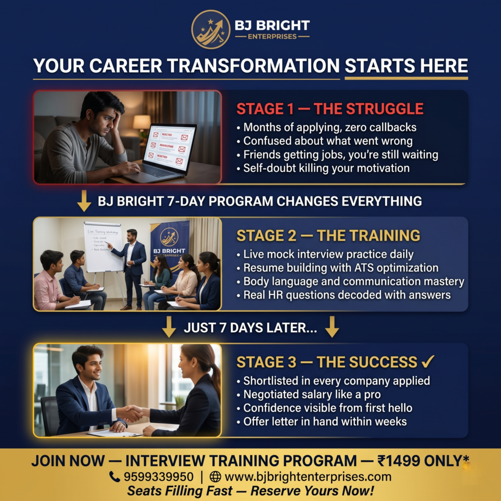 BJ Bright Enterprises’ 7-Day Career Boost Program is a focused, practical course designed to take you from confused to confident — in just one week.